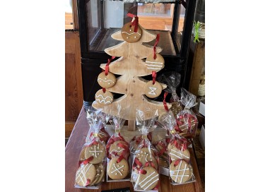 Six biscuits au miel et épices décoratifs, que vous pouvez accrocher à votre sapin puis déguster.